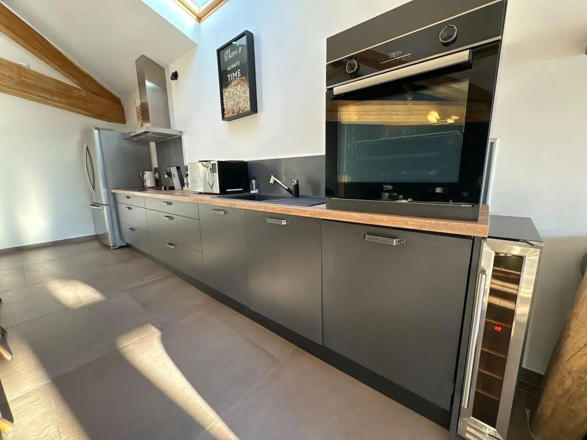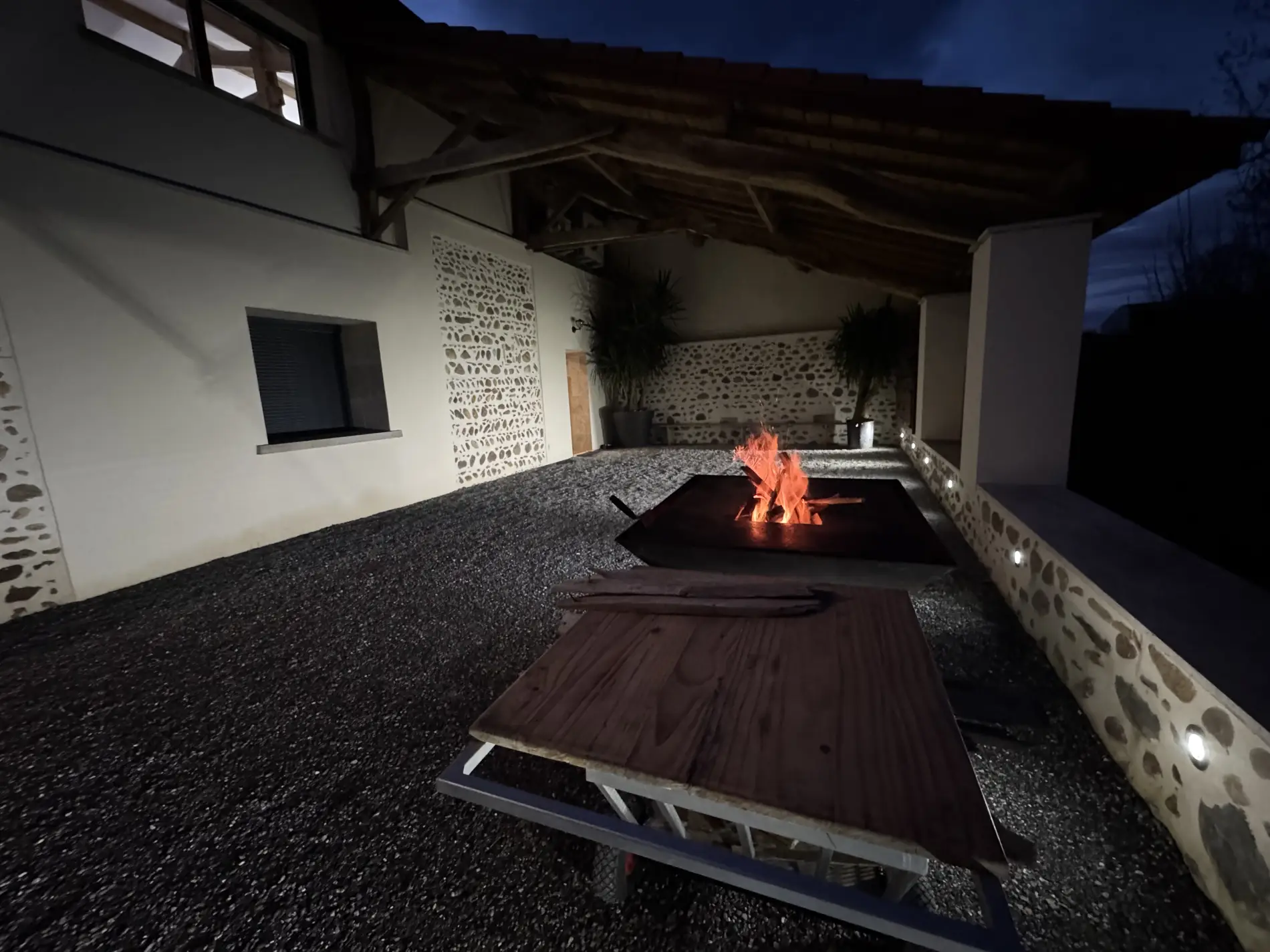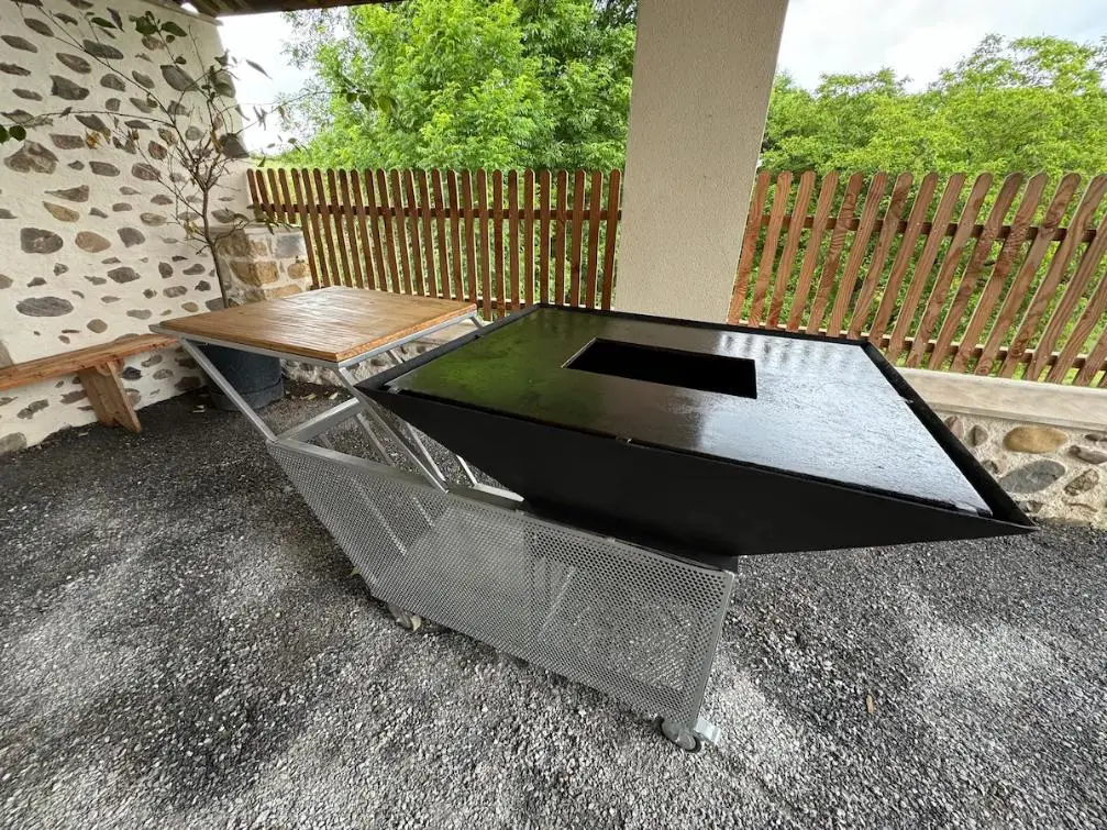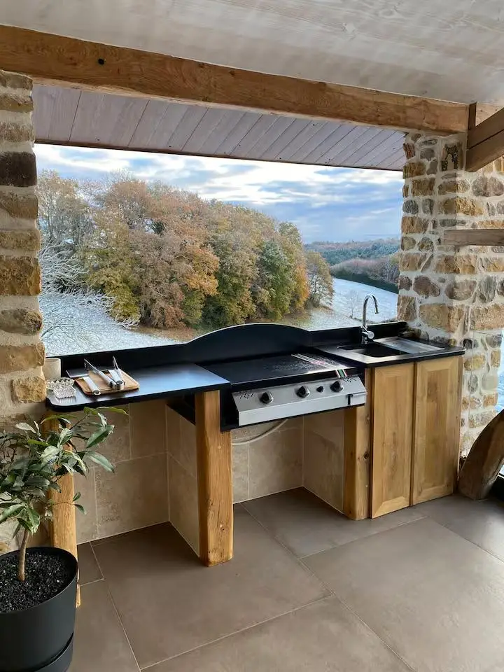 Pour savourer vos repas en extérieur, découvrez une terrasse couverte additionnelle équipée d'une plancha. Cet espace de cuisine extérieure est idéal pour griller viandes, poissons et légumes du terroir, vous permettant de déguster les savoureux produits locaux dans un cadre champêtre et détendu.
