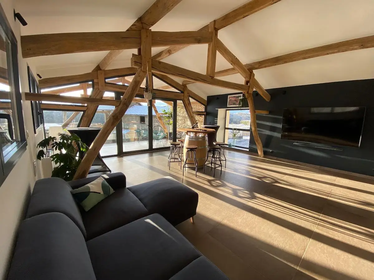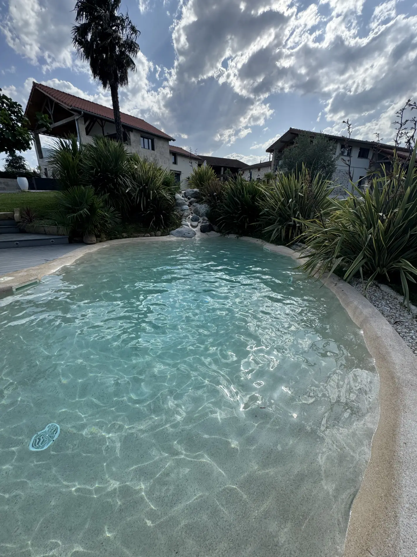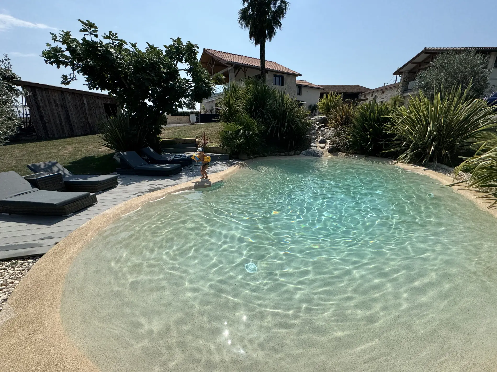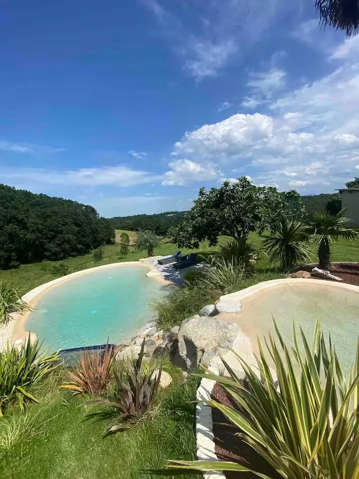 À l'extérieur, laissez-vous tenter par une piscine composée de deux bassins distincts, parfaite pour vous rafraîchir lors des chaudes journées d'été ou pour quelques longueurs revigorantes. Ces installations aquatiques, tout comme le jardin verdoyant qui entoure la propriété, sont des espaces communs que vous partagerez avec les hôtes du second gîte ainsi qu'avec notre famille, créant une atmosphère conviviale.