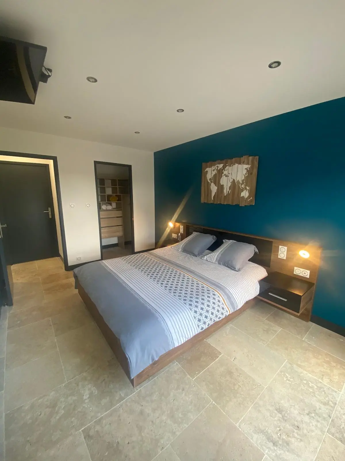 Au rez-de-chaussée, l'espace nuit se déploie harmonieusement avec 3 chambres raffinées, chacune méticuleusement aménagée avec son propre dressing spacieux et une télévision ingénieusement fixée au plafond, invitant à des moments de détente incomparables. Ces espaces intimes s'ouvrent directement sur une généreuse terrasse extérieure de 45 m², créant une transition fluide entre intérieur et extérieur.