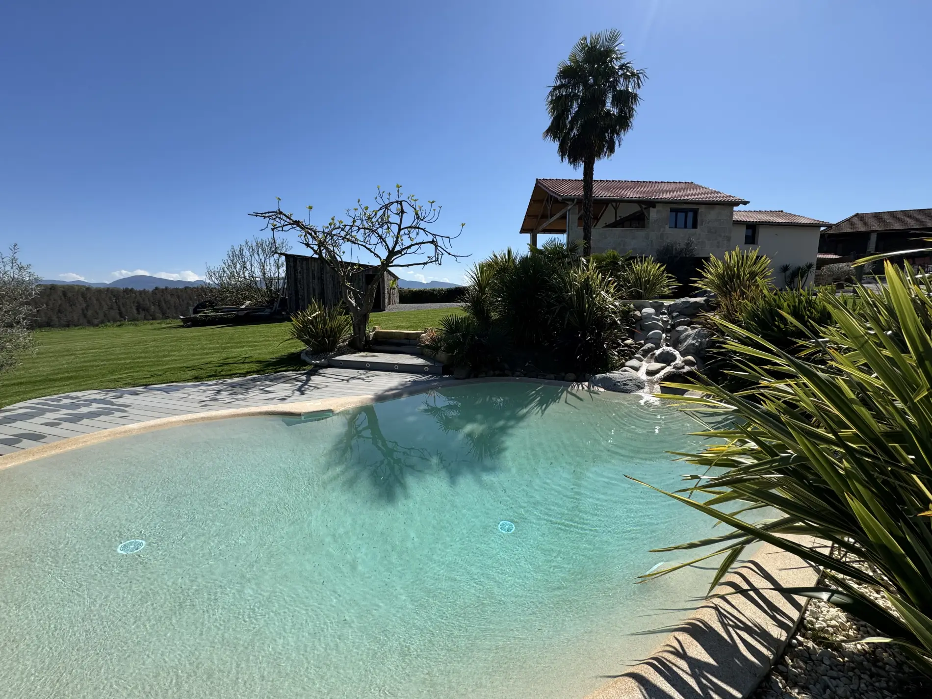 Situé à Villeneuve-Lécussan, au cœur d’un village paisible face à la chaîne des Pyrénées, le domaine Chez Bascans vous accueille dans un ancien corps de ferme entièrement rénové. Cette demeure de prestige réussit l'alliance parfaite entre le caractère de l'ancien et le confort de la modernité. Attenante à notre partie indépendante, la maison a été repensée avec des matériaux de haute qualité pour offrir un cadre de vie exceptionnel, à la fois calme et sans aucun vis-à-vis.