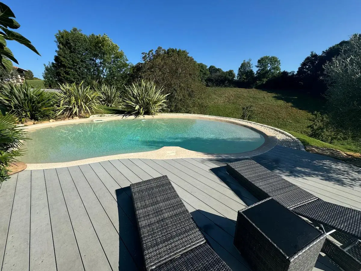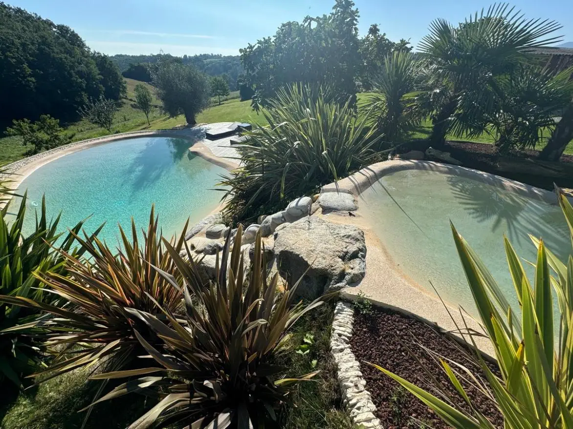 La magnifique piscine lagon, avec ses contours organiques et son eau cristalline, vous invite à des moments de baignade rafraîchissants dans un cadre paysager soigneusement aménagé. Les amateurs de farniente apprécieront les espaces ombragés autour du bassin, parfaits pour la lecture ou la contemplation.
