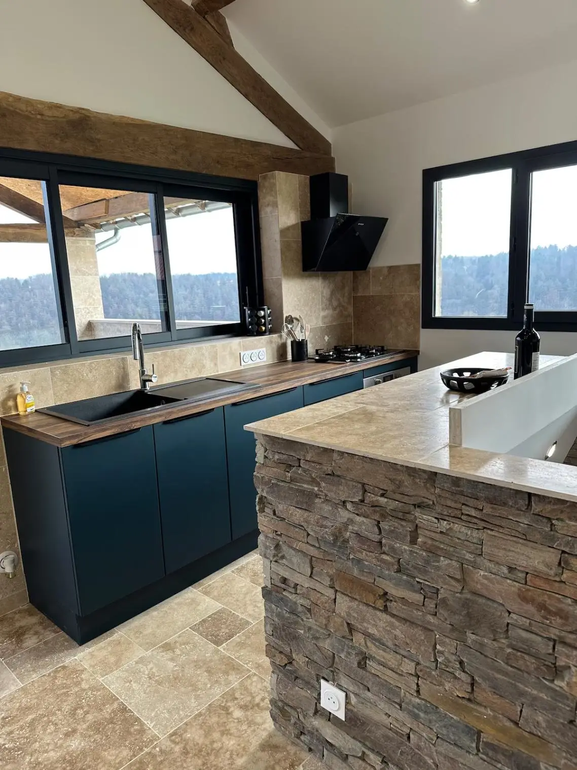 Elle comprend une cuisine entièrement équipée avec des appareils modernes et fonctionnels, idéale pour préparer vos repas en toute autonomie, des plus simples aux plus élaborés. Le plan de travail spacieux et les rangements astucieux facilitent toutes vos préparations culinaires.